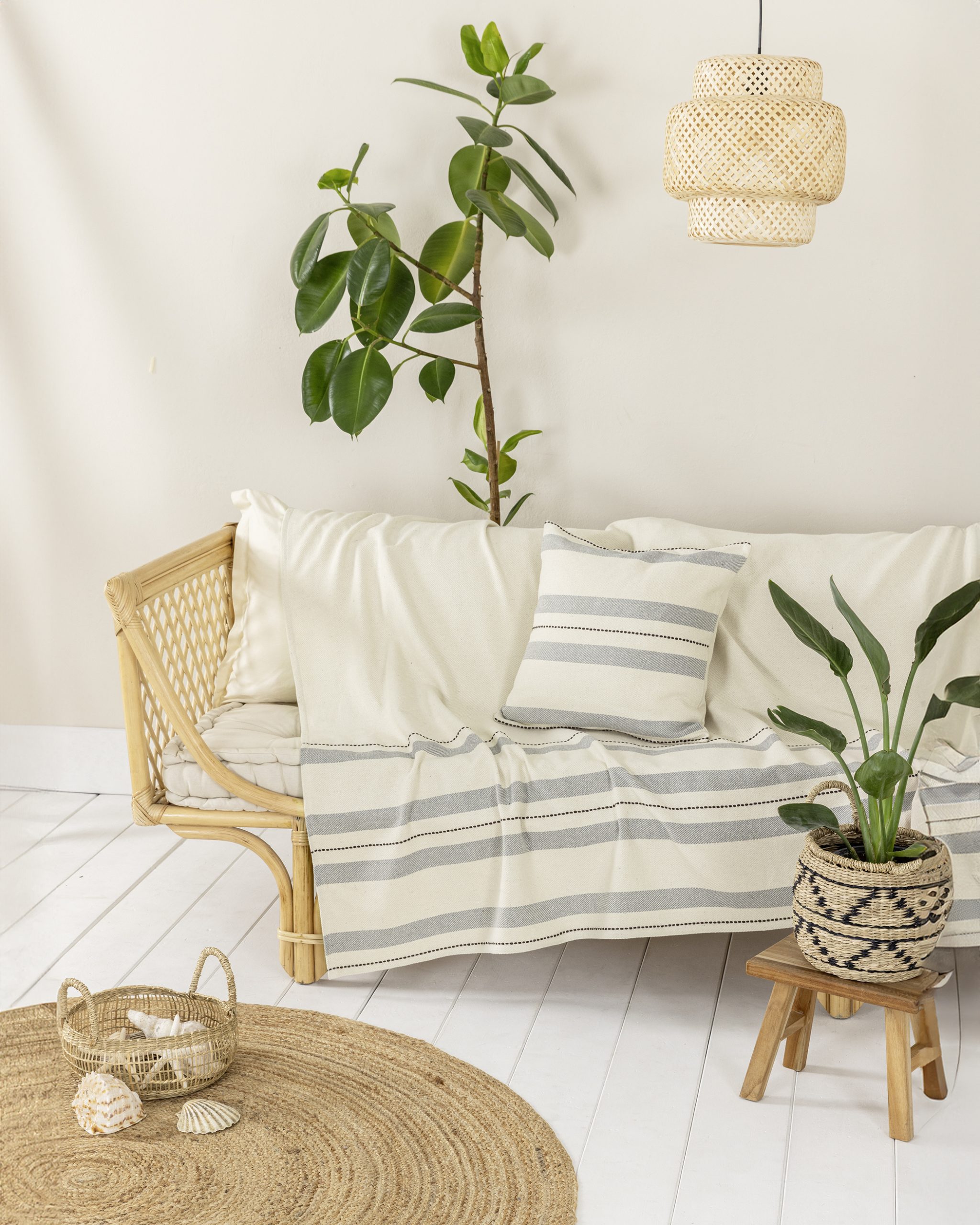 Ριχτάρια της εταιρίας Nima Home, με σύγχρονα χρώματα, για να διακοσμήσετε το σαλόνι σας και να το προφυλάξετε από την σκόνη ή τους λεκέδες. Με υφή διπλής όψης μπορείτε να τα τοποθετήσετε και από τις δύο πλευρές τους. Η βαμβακερή τους σύνθεση τα καθιστά ιδιαίτερα απαλά και ιδανικά για τους δροσερούς μήνες του έτους.