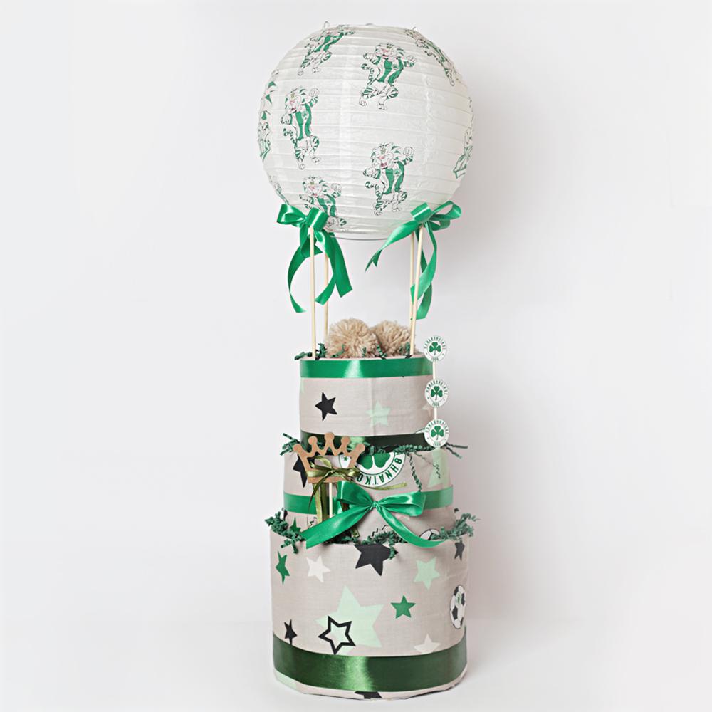 Το 3 όροφο diaper cake για μωράκι περιλαμβάνει: