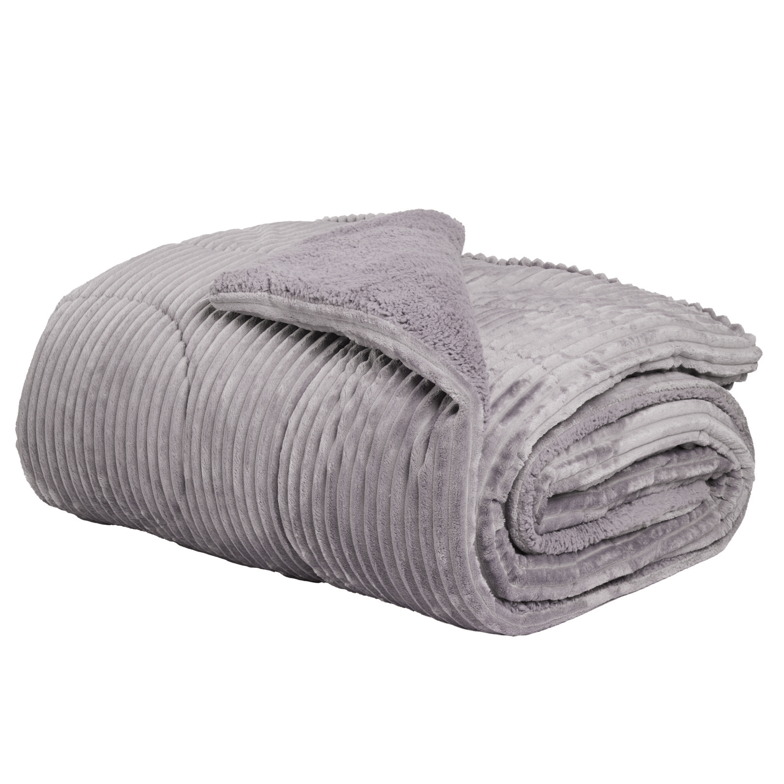 Κουβερτοπάπλωμα μονόχρωμο fleese με ανάγλυφο σχέδιο και γούνα sherpa.  Ζεστό, υποαλλεργικό, με απαλή υφή, ιδιαίτερα μαλακό και ανθεκτικό στη χρήση. Θερμική απόδοση 12 tog