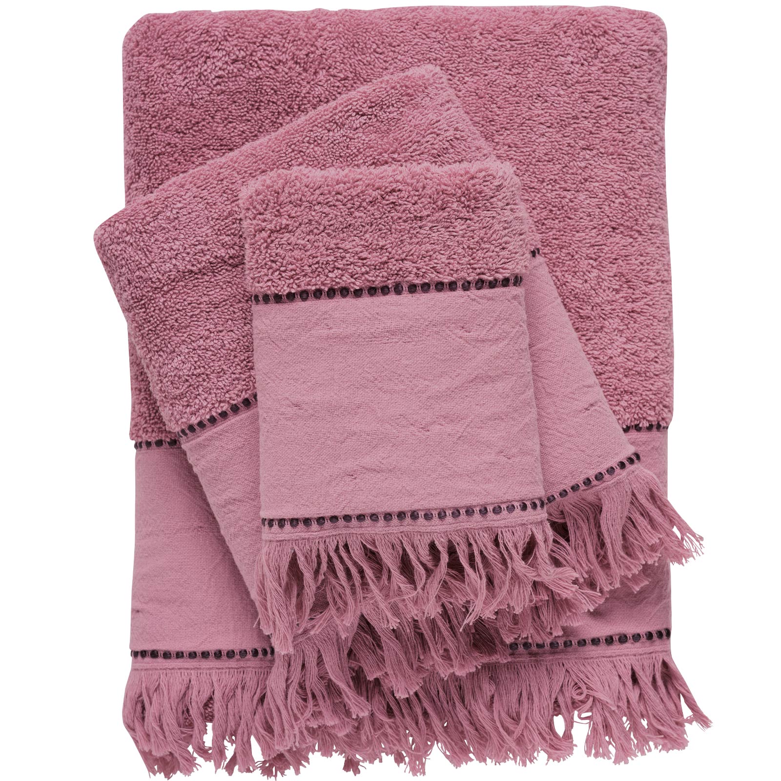 Πετσέτες μονόχρωμες με κρόσσι της σειράς Daily, για να δώσουν στυλ στο μπάνιο σας. Είναι από βαμβάκι υψηλής ποιότητας ιδιαίτερα απορροφητικές και ανθεκτικές στην χρήση. Τα χρώματα που χρησιμοποιούνται είναι ανεξίτηλα και υποαλλεργικά.