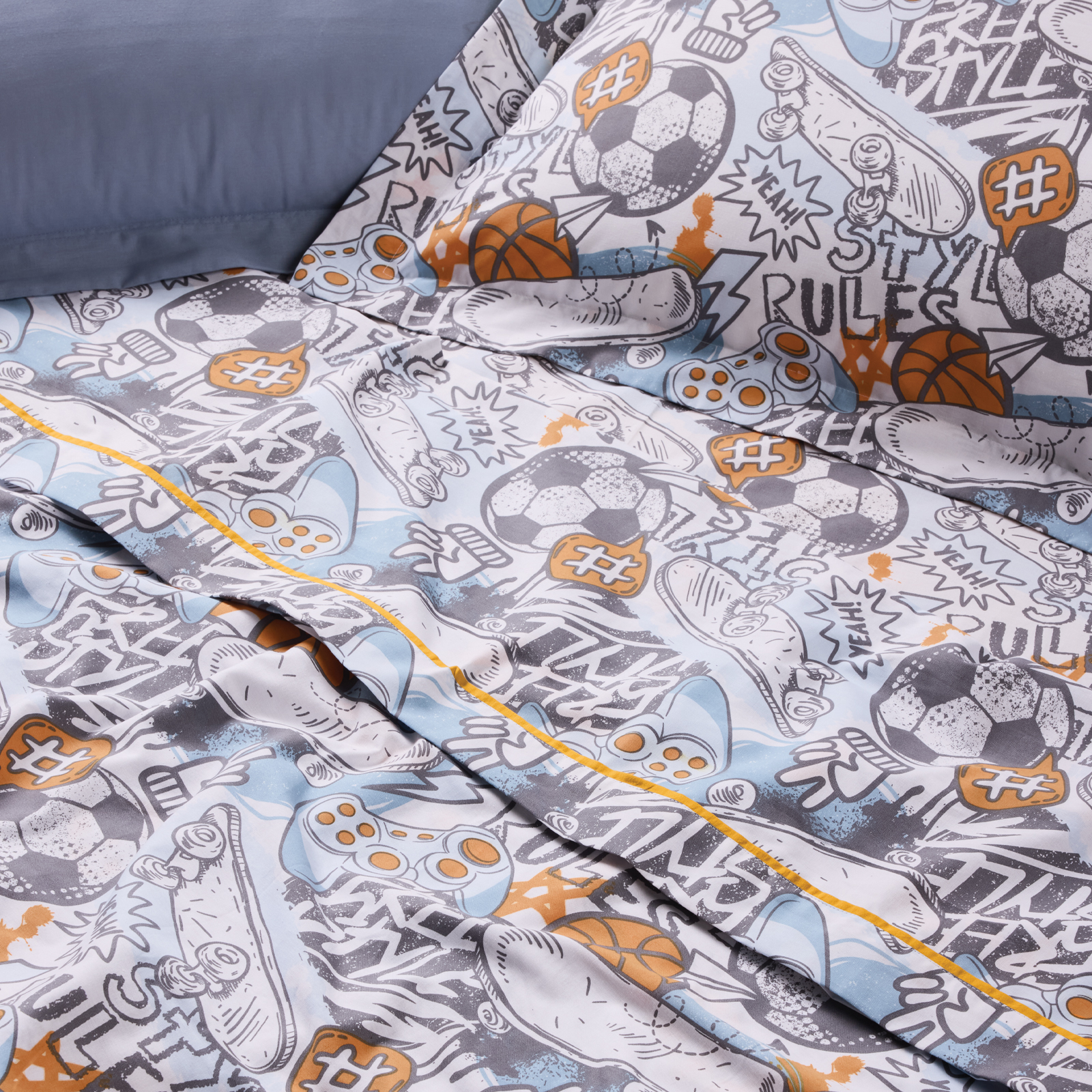 • 1 μαξιλαροθήκη 50×70+5 με oxford ραφή στο σχέδιο του πανωσέντονου.
