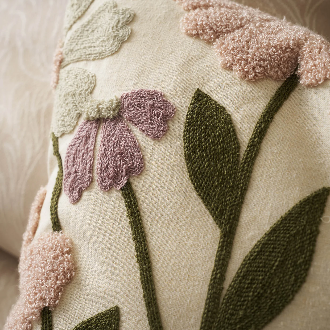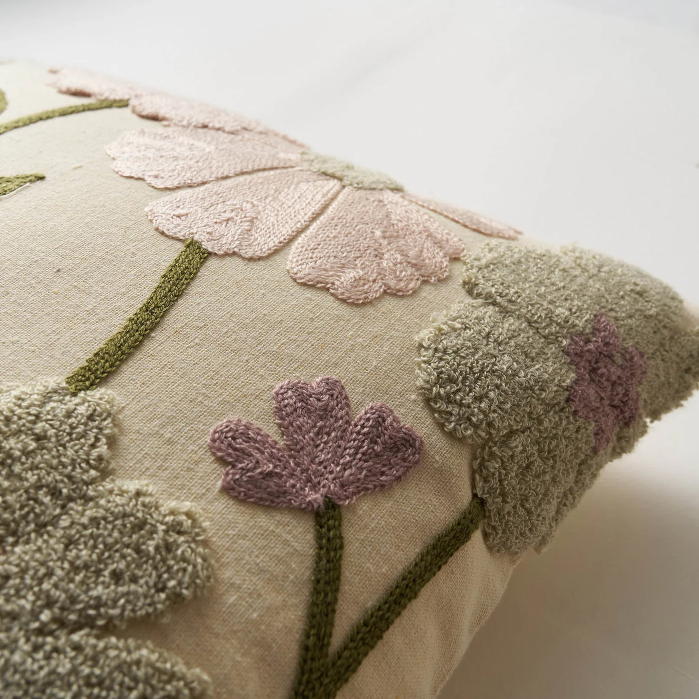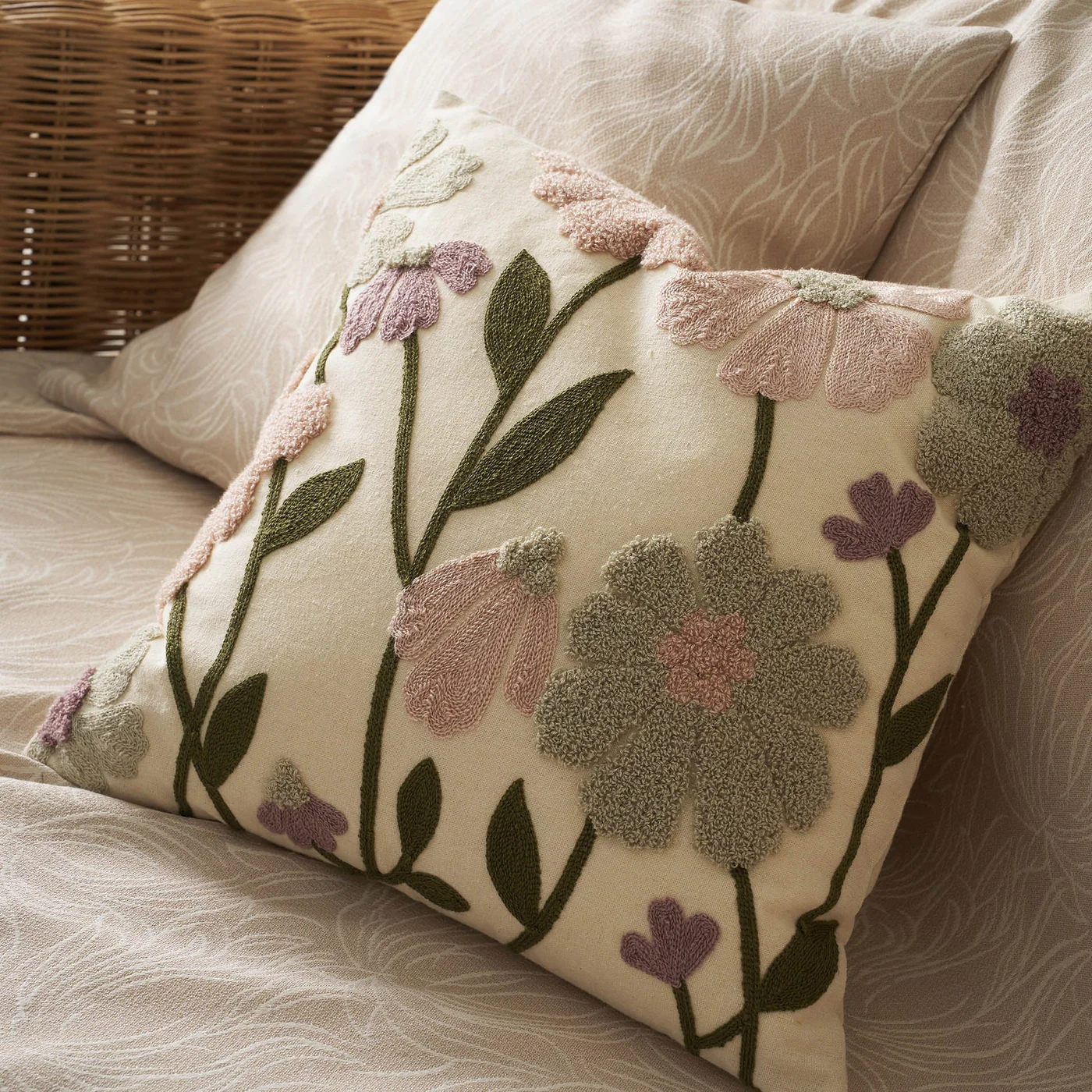 Διακοσμητικά μαξιλάρια βαμβακερά με ανάγλυφο φλοράλ κέντημα. Δεν ζαρώνουν, ούτε χρειάζονται ιδιαίτερη φροντίδα.