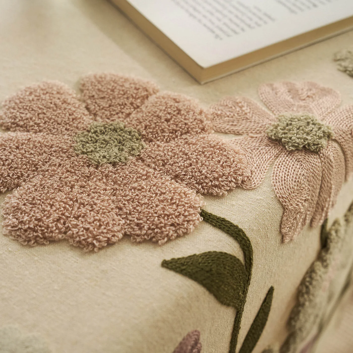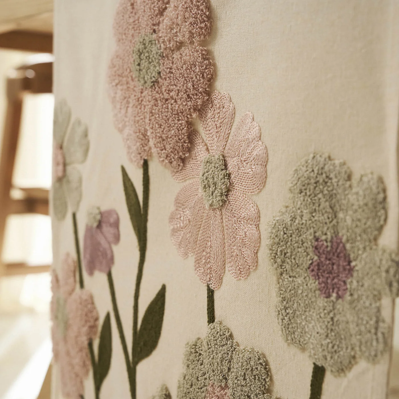 Τραβέρσα βαμβακερή με ανάγλυφο φλοράλ κέντημα.