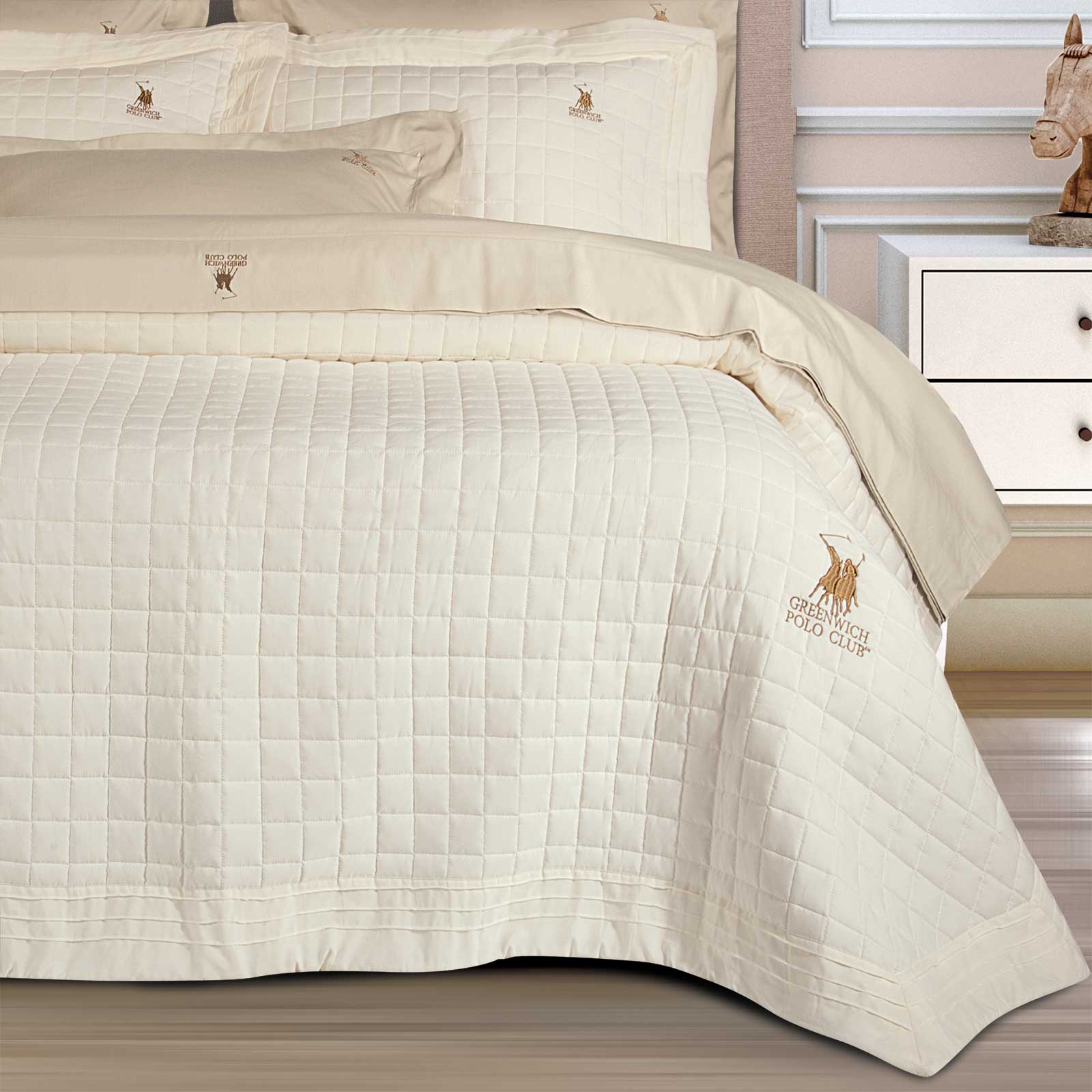 Μονόχρωμο κουβερλί Greenwich Polo Club με κέντημα της σειράς Essential. Αυτό που χαρακτηρίζει την συλλογή είναι οι απαλές αποχρώσεις, τα διακριτικά σχέδια και το διαχρονικό ύφος.