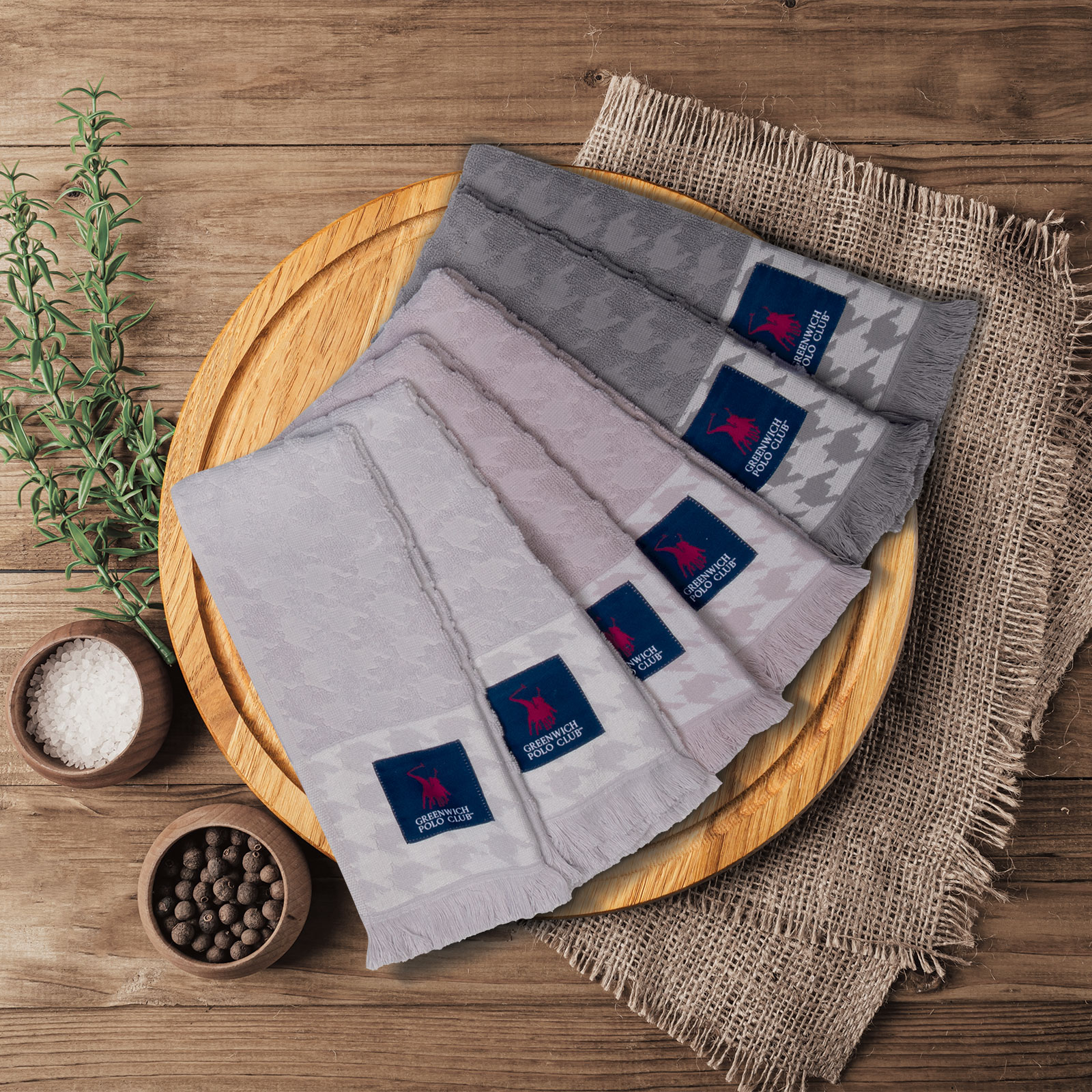 Πετσέτες βαμβακερές, έξτρα απορροφητικές και ανθεκτικές στις πολλές πλύσεις, της εταιρίας Greenwich Polo Club, για να ομορφύνουν την κουζίνα σας.