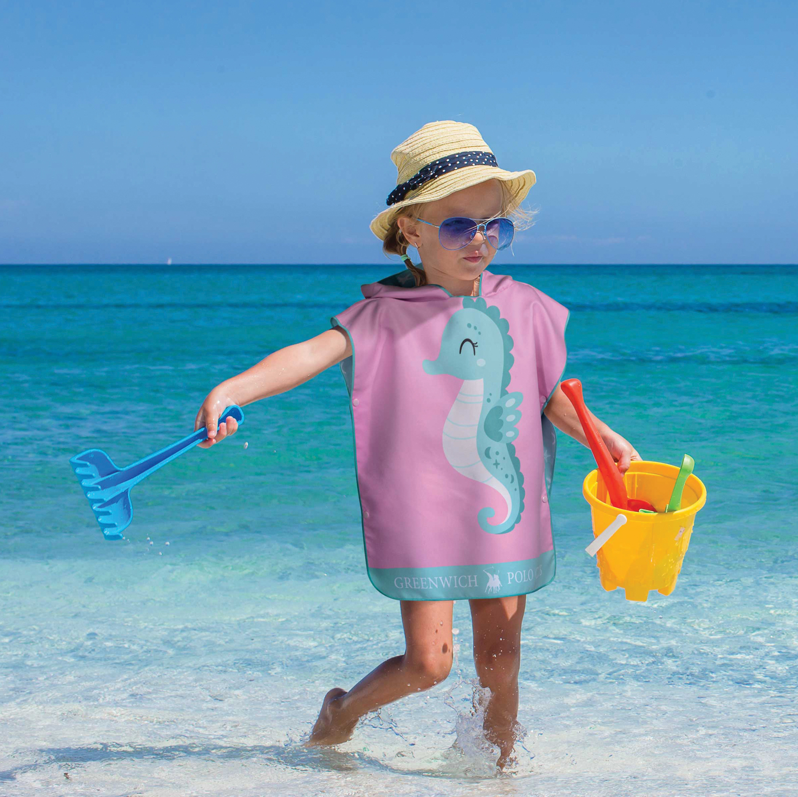 Πόντσο θαλάσσης της εταιρίας Greenwich Polo Club, για να χαρίζεται μία υπέροχη αγκαλιά στο παιδί σας μετά από κάθε βουτιά. Κατασκευασμένο από Microfiber νήματα τεχνολογίας Quick Dry, τα οποία είναι γνωστά για την απορροφητικότητά τους και την ικανότητά τους να στεγνώνουν πολύ γρήγορα.