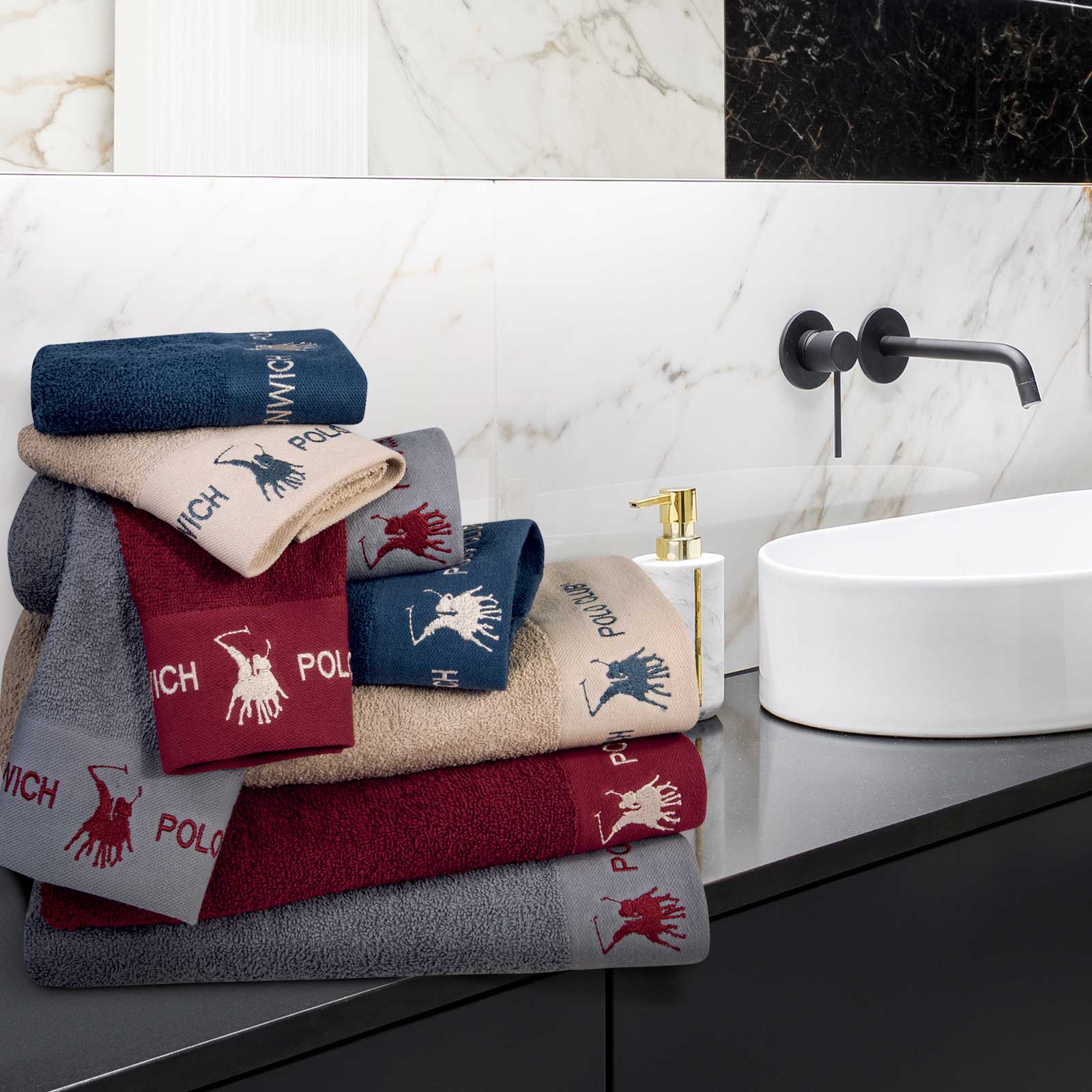 Πετσέτες Greenwich Polo Club, με ύφανση jacquard και βαμβάκι υψηλής ποιότητας, ιδιαίτερα απορροφητικές και ανθεκτικές. Τα χρώματα που χρησιμοποιούνται είναι ανεξίτηλα και υποαλλεργικά. Επιλέξτε Greenwich Polo Club για να απολαύσετε ποιότητα, στυλ και πολυτέλεια.