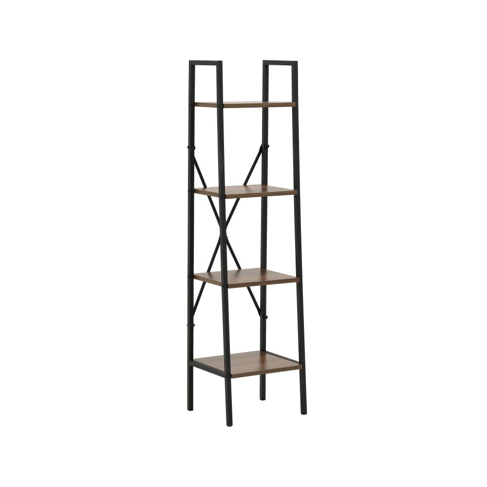 Η βιβλιοθήκη της εταιρείας Inart αποτελείται από μέταλλο και μοριοσανίδα (νοβοπάν), ένα παράγωγο ξύλου από μικρά κομμάτια ξύλου και πριονίδι. Διαθέτει ράφια για οργάνωση και αποθήκευση βιβλίων και άλλων αντικειμένων. Το προϊόν παραδίδεται συναρμολογημένο, έτοιμο να το το τοποθετήσετε . H απόχρωση του ξύλου στα ράφια διαφέρει από αυτή της φωτογραφίας σε πιο ανοιχτό.