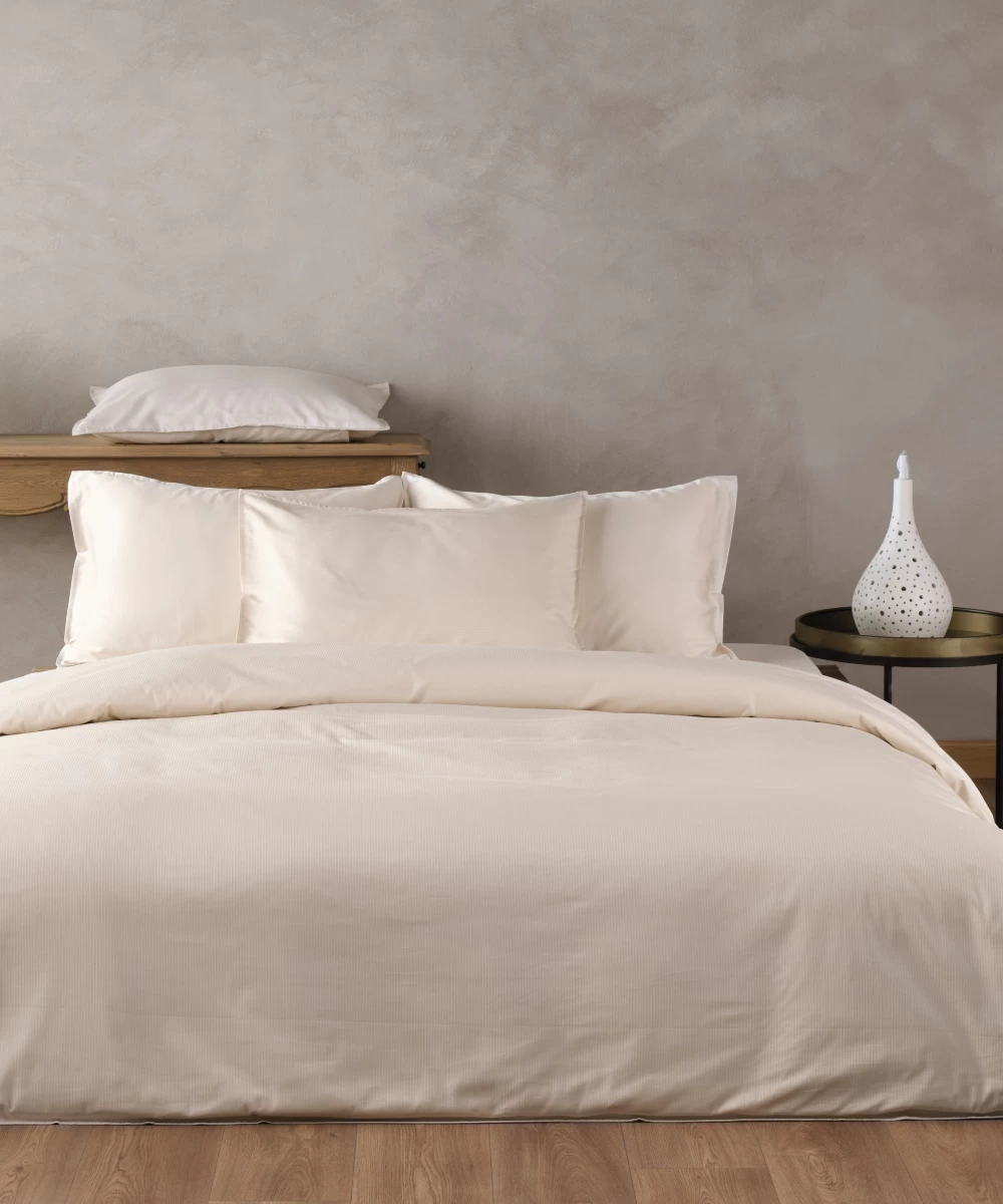 Βαμβακοσατέν υφάσματα από νήματα πενιέ ανώτερης ποιότητας με πολυτελή, μαλακή υφή, που προσφέρουν άνετο και υγιή ύπνο. Η σατέν ύφανσή τους προσδίδει ιδιαίτερα απαλή, στιλπνή και ανάλαφρη αίσθηση, ενώ ταυτόχρονα διατηρούν όλα τα πλεονεκτήματα των βαμβακερών λευκών ειδών. Το ύφασμά τους αναπνέει φυσικά, είναι αντιστατικό, υποαλλεργικό και πολύ φιλικό προς το δέρμα. Έχουν εξαιρετική αντοχή στον χρόνο και δεν απαιτούν ειδική φροντίδα στο πλύσιμο και το σιδέρωμα.