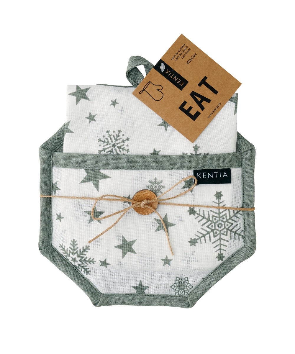 Σετ κουζίνας από την εταιρεία Kentia, με χριστουγεννιάτικη digital παράσταση. Ιδανικό για ένα όμορφο δωράκι ή για να δώσετε γιορτινό χρώμα.