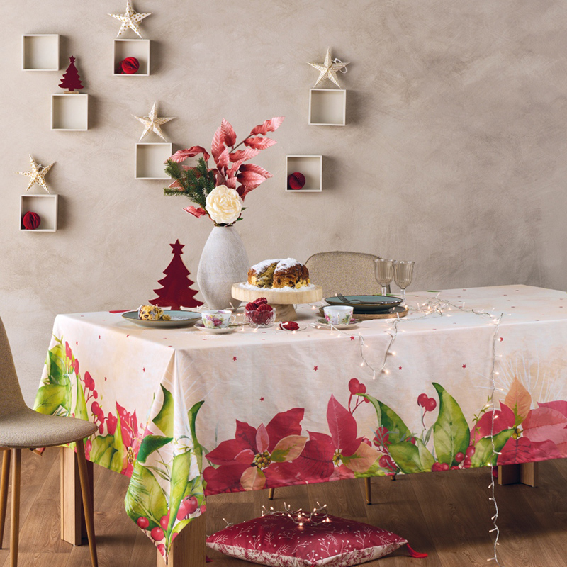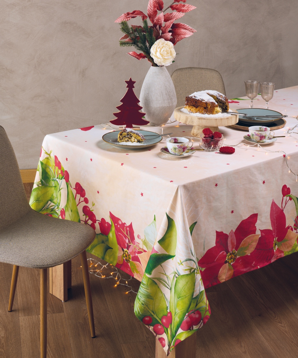 Δώστε στην τραπεζαρία σας γιορτινή αύρα με τραπεζομάντηλα σε χριστουγεννιάτικα σχέδια, από την εταιρία Kentia. Τα τραπεζομάντηλα της σειράς είναι εύκολα στην χρήση και ανθεκτικά στις συχνές πλύσεις.