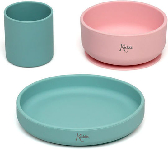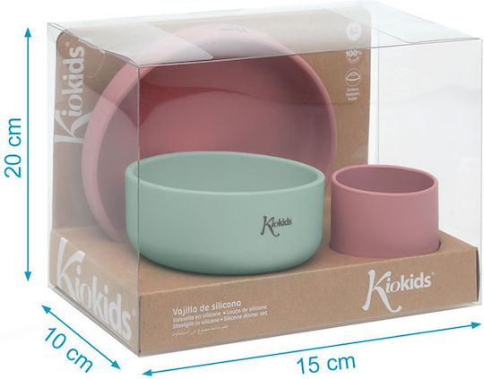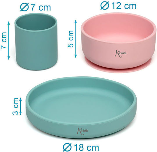 Kiokids Σετ 3 Τμχ. Φαγητού Σιλικόνης 20×15 Ροζ/Μέντα
