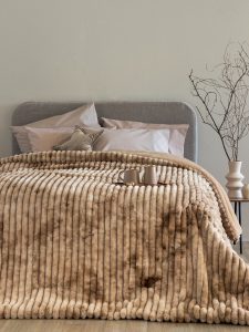Κουβερτοπάπλωμα με οικολογική γούνα, που δίνει αριστοκρατική όψη στο υπνοδωμάτιο, σας προτείνει η εταιρία Palamaiki. Δεν ζαρώνει, ούτε χρειάζεται ιδιαίτερη φροντίδα. Έχει απαλή αίσθηση στην υφή και αποτελεί εξαιρετική επιλογή για χειμερινούς μήνες. Ανήκει στα λευκά είδη που δεν προσελκύουν το σκόρο όταν αποθηκεύονται για τους καλοκαιρινούς μήνες.