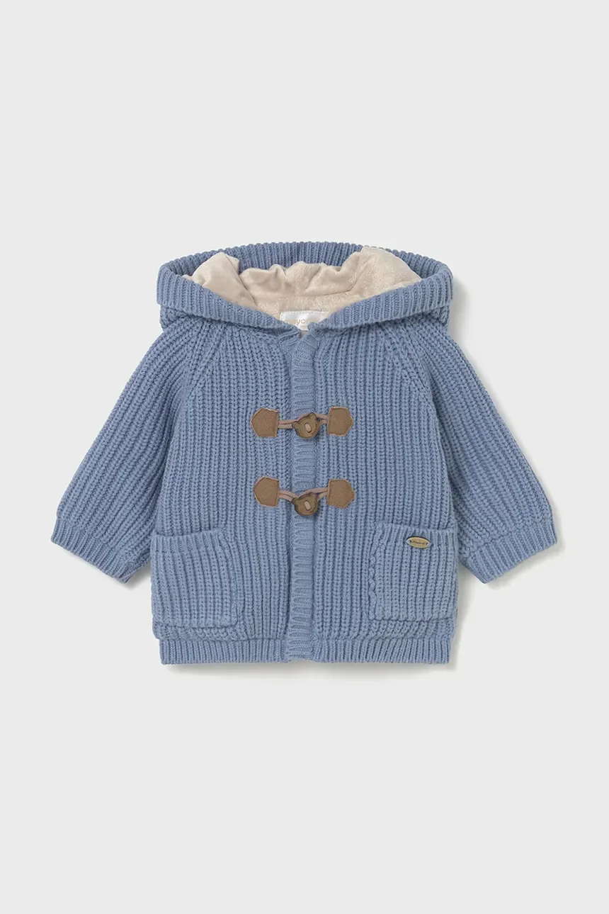 Πλεκτή ζακέτα μωρού από τη συλλογή Mayoral Newborn. Μοντέλο κατασκευασμένο από μαλακό, λείο πλεκτό. Εξαιρετικά άνετο, αναπνέον ύφασμα με υψηλή περιεκτικότητα σε βαμβάκι.