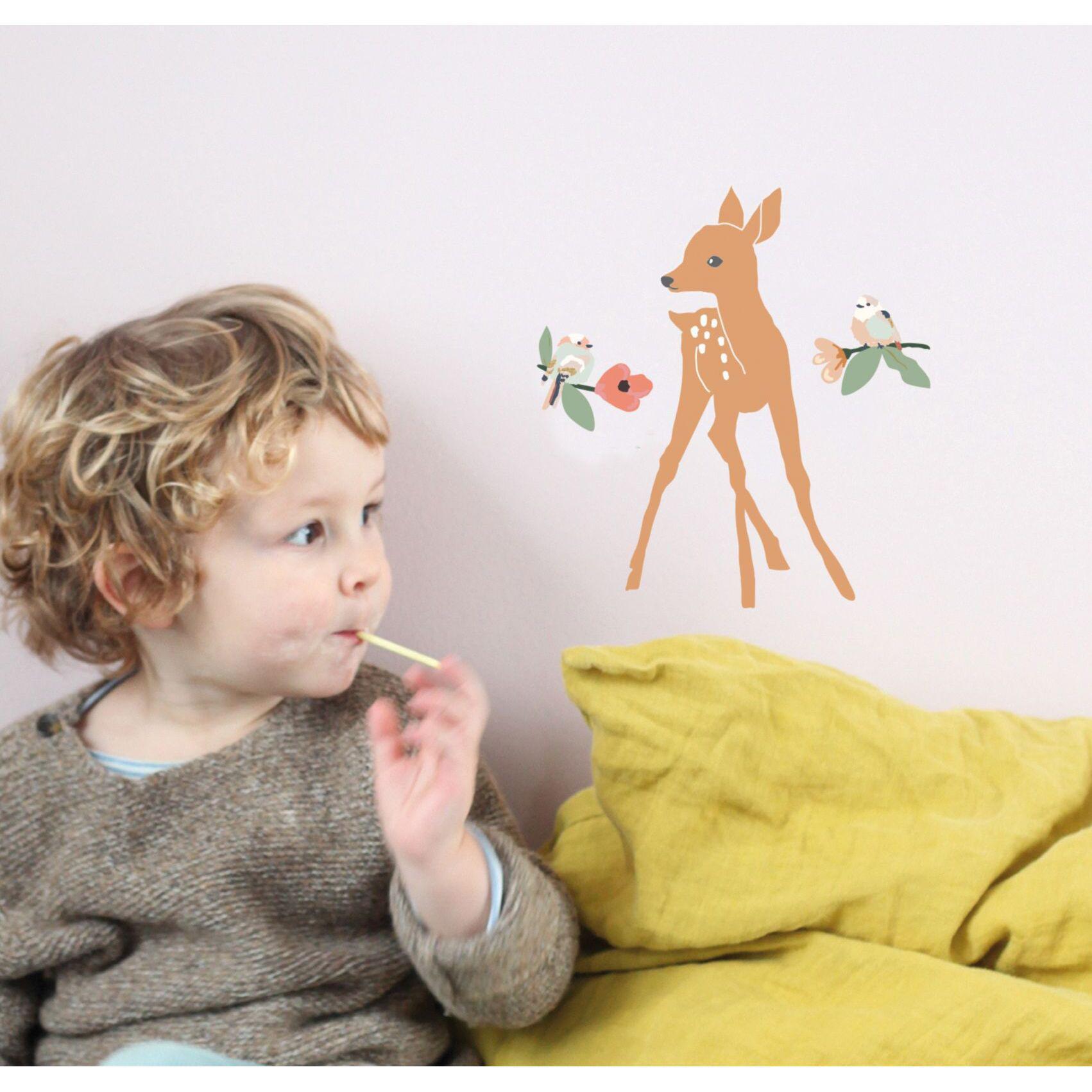 Το αγαπημένο ελαφάκι όλων τώρα και σε αυτοκόλλητο! Το πιο όμορφο αυτοκόλλητο για το παιδικό δωμάτιο, με μοναδικά χρώματα και γλυκούς χαρακτήρες που θα στολίσουν φανταστικά τον τοίχο σας!Τα αυτοκόλλητα τοίχου μας μπορούν να εφαρμοστούν σε ομαλές, στεγνές και καθαρές επιφάνειες. Η εφαρμογή είναι εύκολη και όποτε θέλετε μπορείτε επίσης με ευκολία να τα αφαιρέσετε από τον τοίχο σας!