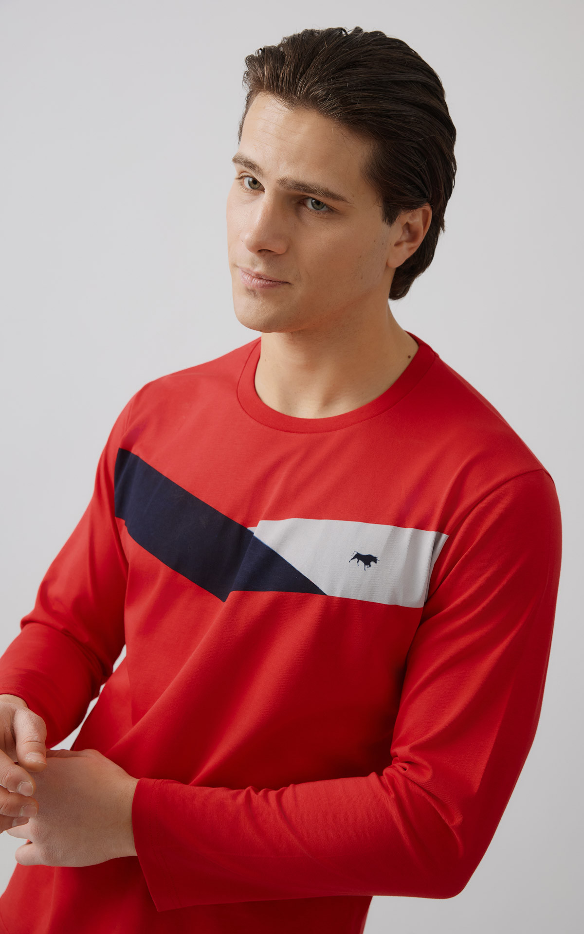 Χειμερινή πυζάμα από 100% βαμβακερό ύφασμα, υψηλής ποιότητας. Το σετ περιλαμβάνει μπλούζα, μικρό κέντημα στο στήθος και ίσιο παντελόνι.