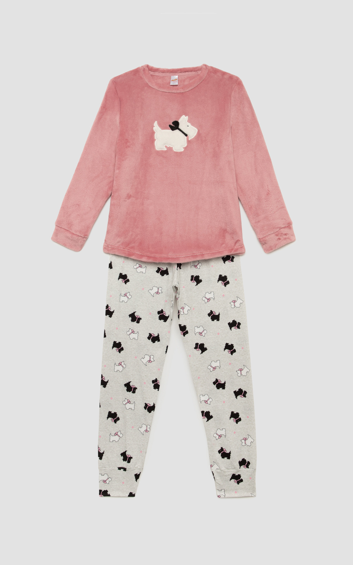 Παιδική χειμερινή πυζάμα, με συνδυασμό μπλούζας από 100% fleece με έξτρα κέντημα στο στήθος και παντελόνι 100% βαμβάκι, με μπάσκες στα τελειώματα.
