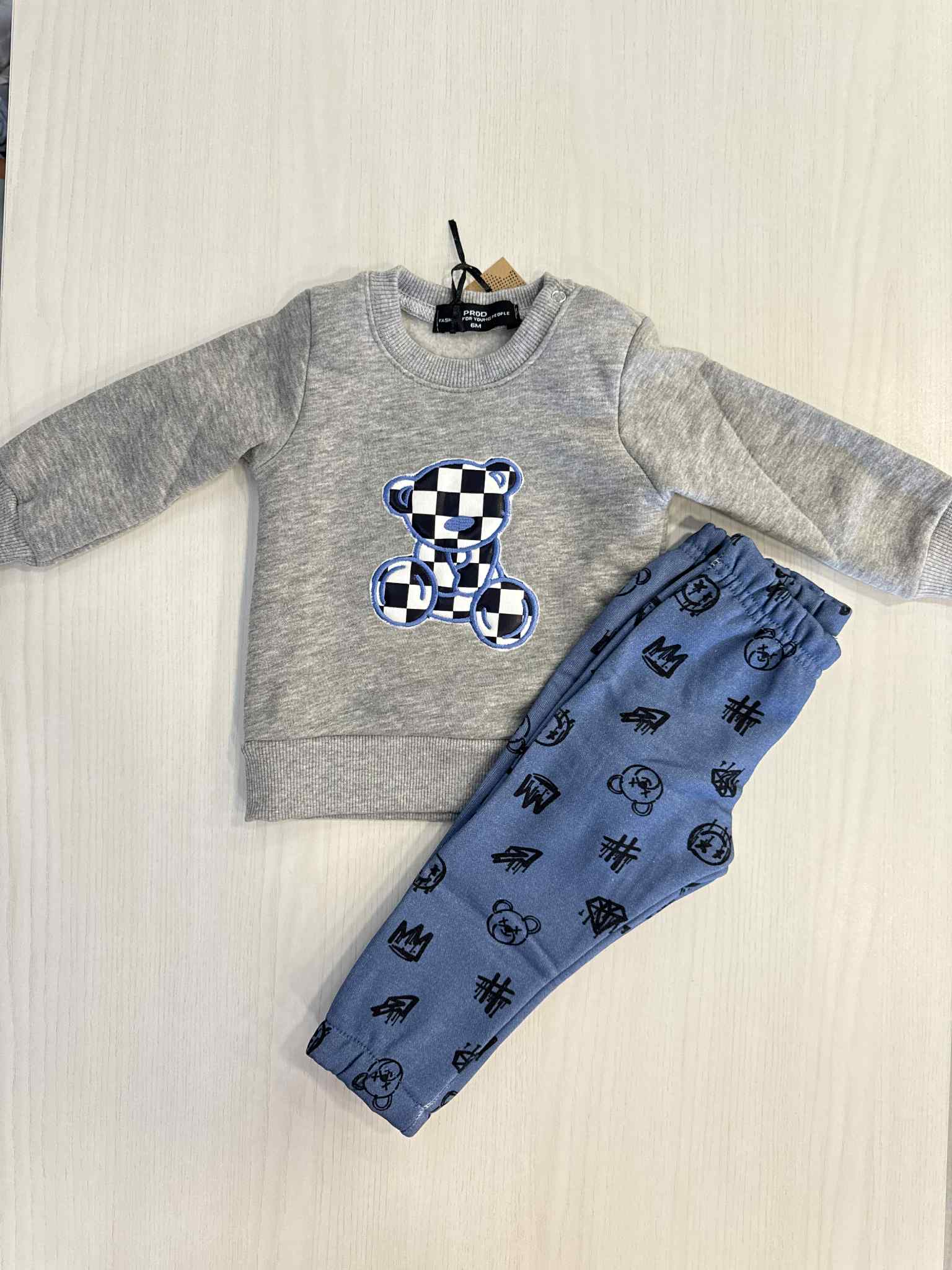 Prod Σετ 2 Τμχ. Βρεφική Velour Φόρμα Bear Γκρι