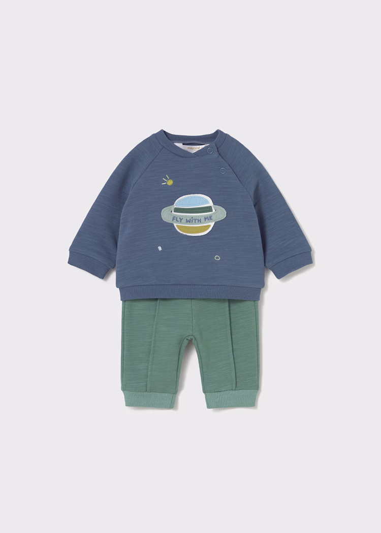 Σετ τεσσάρων τεμαχίων για Νεογέννητο που αποτελείται από δύο σετ με φούτερ και παντελόνι που συνδυάζονται μεταξύ τους. Φούτερ μακρυμάνικο για Νεογέννητο. Στρογγυλεμένος γιακάς. Κούμπωμα στο πλάι με κόπιτσες. Από το μέγεθος 6-9 το άνοιγμα στο πλάι αντικαθίσταται με κόπιτσες στην πλάτη. Παντελόνι από τη συλλογή sporty, πολύ ελαστικό κατάλληλο για αθλητικές δραστηριότητες. Λάστιχο στη μέση για καλύτερη εφαρμογή. Με λάστιχο στο κάτω μέρος για καλύτερη εφαρμογή. Φούτερ μακρυμάνικο για Νεογέννητο. Στρογγυλεμένος γιακάς. Κούμπωμα στο πλάι με κόπιτσες. Διακοσμητικές λεπτομέρειες: Διακοσμητικό απλικέ, Κέντημα. Από το μέγεθος 6-9 το άνοιγμα στο πλάι αντικαθίσταται με κόπιτσες στην πλάτη.