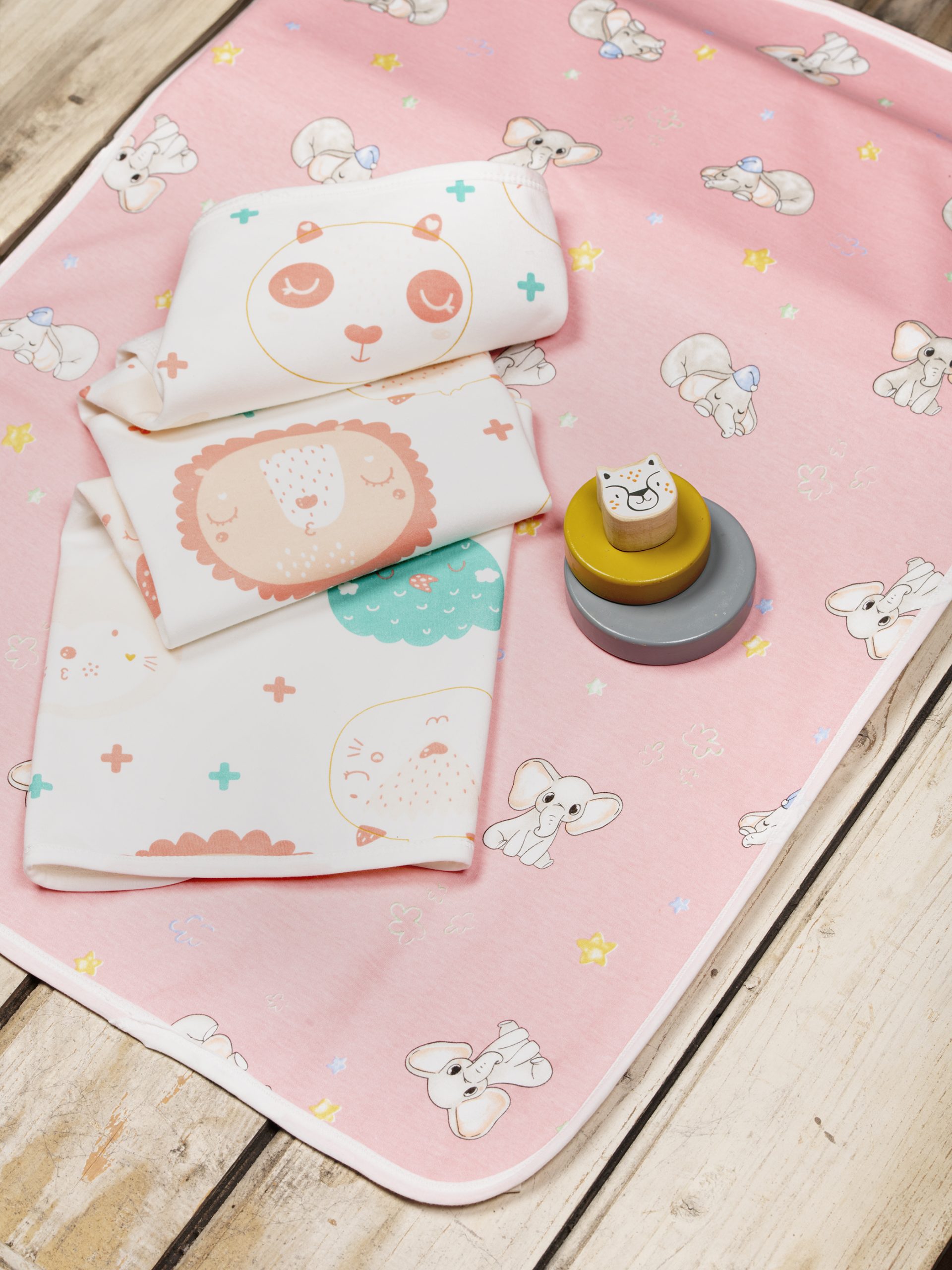 Βρεφικό σελτεδάκι διπλής όψης (σετ 2 τεμαχίων), η μια όψη από εμπριμέ βαμβακερό ύφασμα και η άλλη από βαμβάκι jersey ενωμένο με λαµιναρισµένο film πολυουρεθάνης (PU) 0,36 χιλιοστών, που προσφέρει απόλυτη στεγανότητα. Είναι υποαλλεργικό, εξαιρετικά απορροφητικό και ταυτόχρονα απόλυτα αδιάβροχο. Έχει μεγάλη διάρκεια ζωής και πλένεται σε υψηλές θερμοκρασίες. Κατάλληλο και για την αλλαξιέρα.
