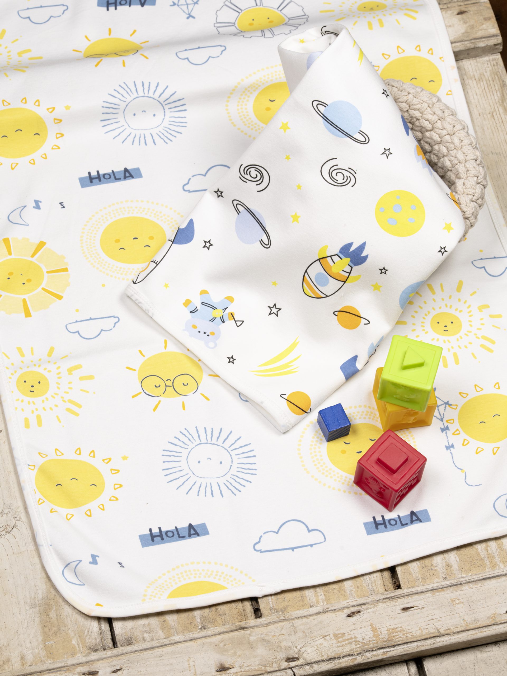 Βρεφικό σελτεδάκι διπλής όψης (σετ 2 τεμαχίων), η μια όψη από εμπριμέ βαμβακερό ύφασμα και η άλλη από βαμβάκι jersey ενωμένο με λαµιναρισµένο film πολυουρεθάνης (PU) 0,36 χιλιοστών, που προσφέρει απόλυτη στεγανότητα. Είναι υποαλλεργικό, εξαιρετικά απορροφητικό και ταυτόχρονα απόλυτα αδιάβροχο. Έχει μεγάλη διάρκεια ζωής και πλένεται σε υψηλές θερμοκρασίες. Κατάλληλο και για την αλλαξιέρα.