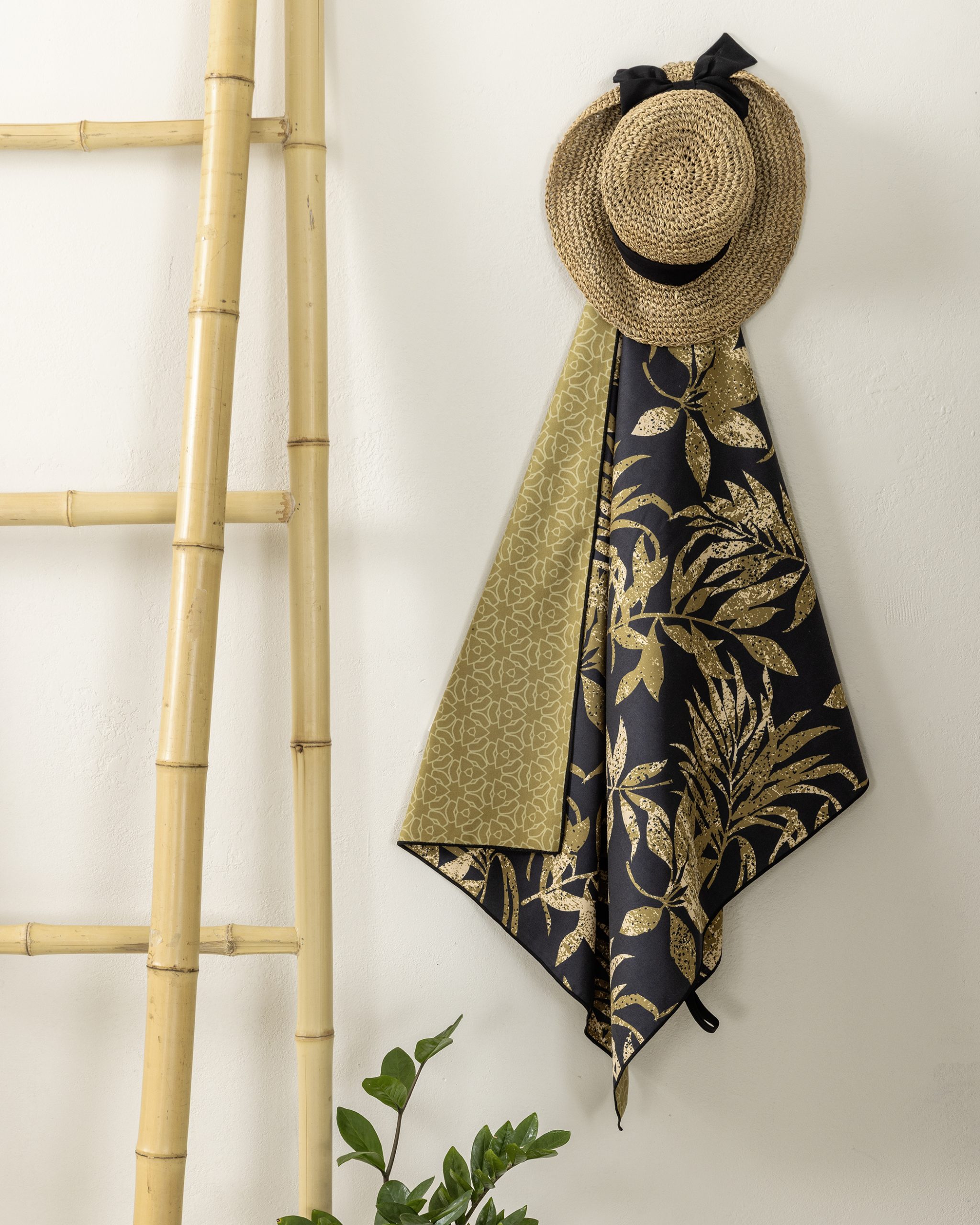 Πετσέτα θαλάσσης, με σύνθεση microfiber και τεχνολογία quick dry ώστε να στεγνώνει γρήγορα μετά από κάθε χρήση. Τα υφάσματα από microfiber έχουν πυκνή ύφανση από εξαιρετικά λεπτά νήματα ώστε να είναι ιδιαίτερα μαλακά και απαλά στην υφή. Διαθέτει μια πρακτική θηλιά από φαρδύ λάστιχο, που την τυλίγει, ώστε να κάνει εύκολη τη μεταφορά της στην παραλία και σε κάθε δραστηριότητα. Είναι ιδανική για τις διακοπές και τα ταξίδια καθώς πιάνει ελάχιστο χώρο, είναι ελαφριά στεγνώνει και καθαρίζει εύκολα, χαρίζοντας ταυτόχρονα ξεχωριστό στιλ.