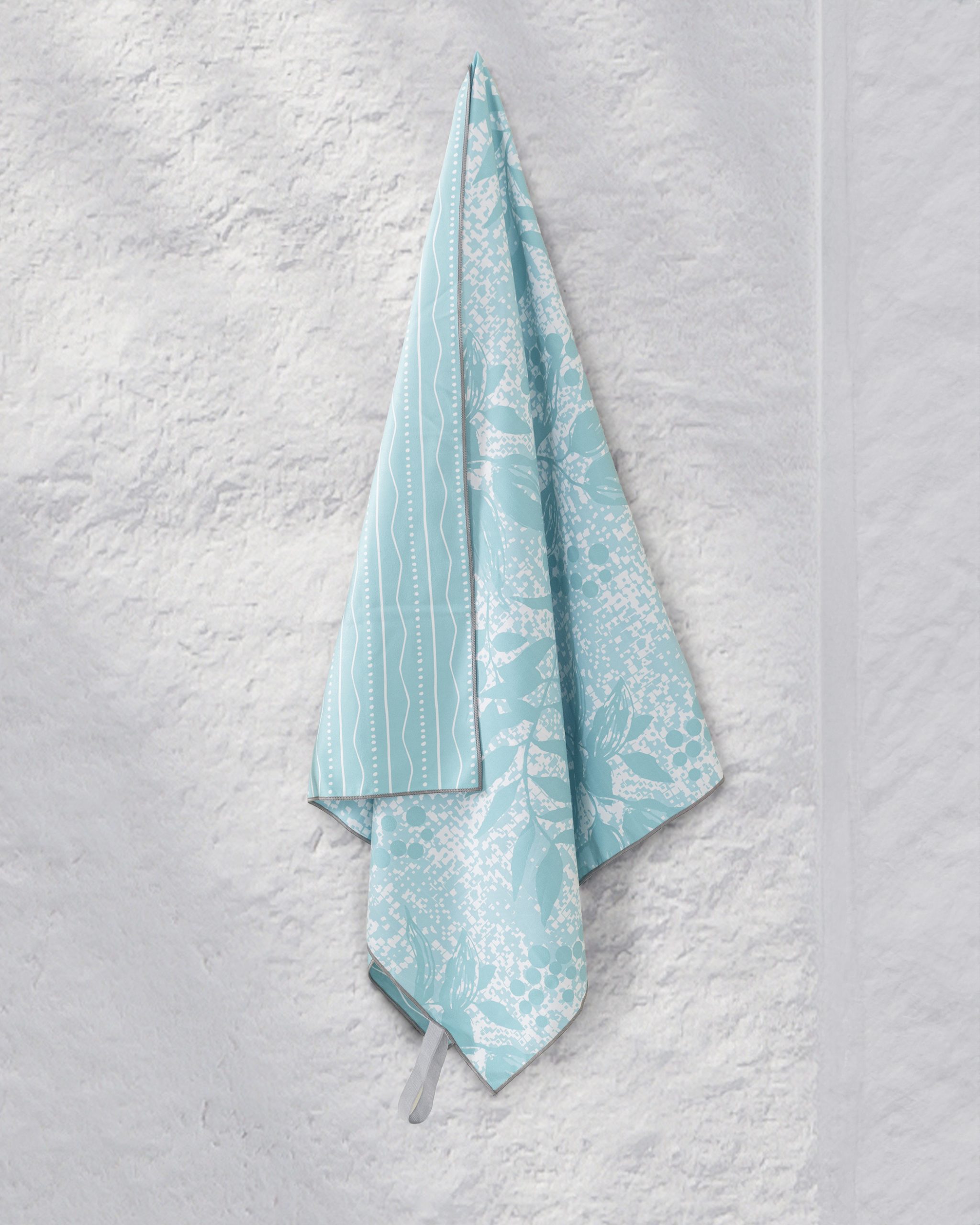 Πετσέτα θαλάσσης, με σύνθεση microfiber και τεχνολογία quick dry ώστε να στεγνώνει γρήγορα μετά από κάθε χρήση. Τα υφάσματα από microfiber έχουν πυκνή ύφανση από εξαιρετικά λεπτά νήματα ώστε να είναι ιδιαίτερα μαλακά και απαλά στην υφή. Διαθέτει μια πρακτική θηλιά από φαρδύ λάστιχο, που την τυλίγει, ώστε να κάνει εύκολη τη μεταφορά της στην παραλία και σε κάθε δραστηριότητα. Είναι ιδανική για τις διακοπές και τα ταξίδια καθώς πιάνει ελάχιστο χώρο, είναι ελαφριά στεγνώνει και καθαρίζει εύκολα, χαρίζοντας ταυτόχρονα ξεχωριστό στιλ.
