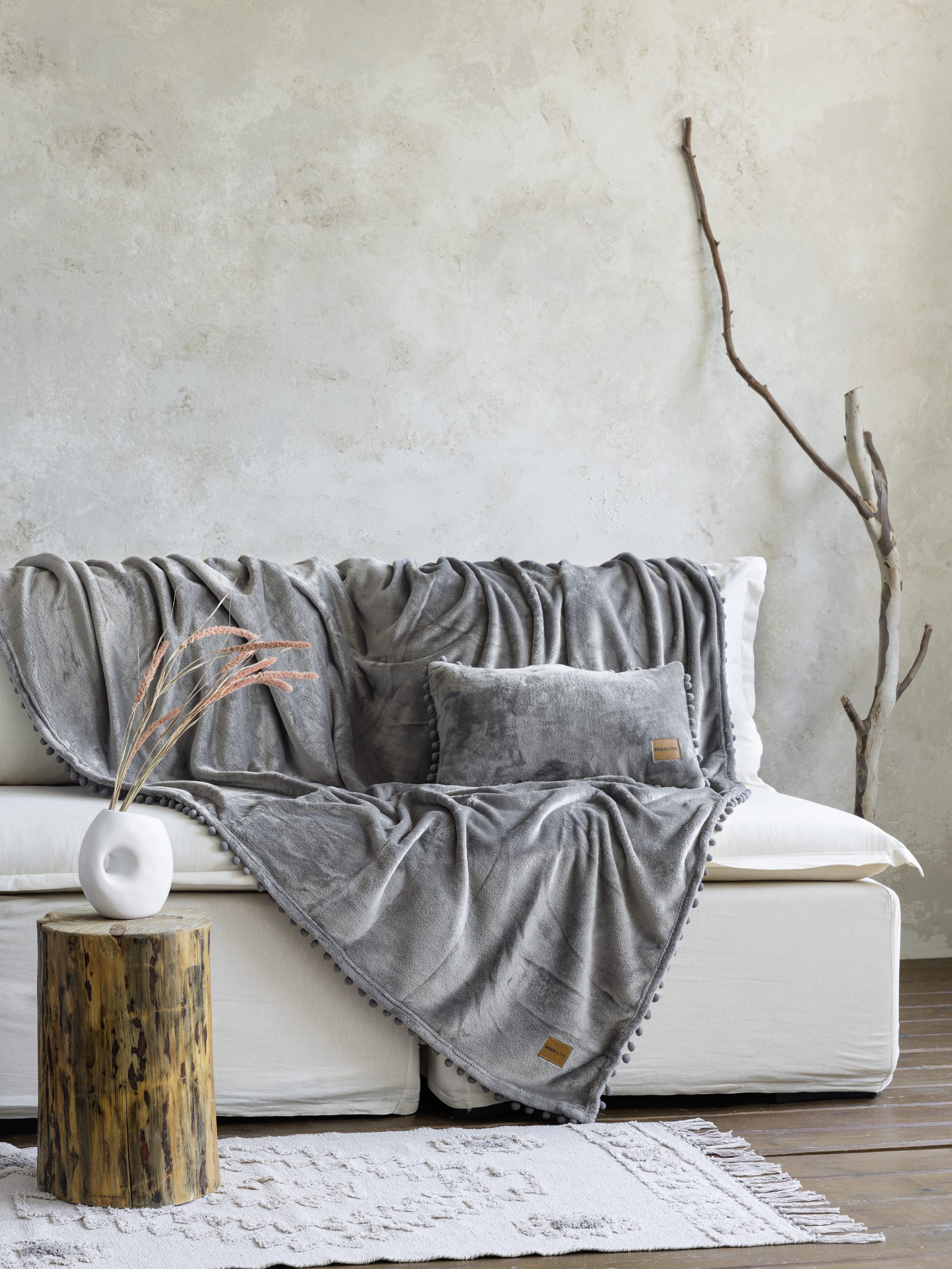 Ριχτάρι fleese με τελείωμα πον πον, εξαιρετικά μαλακό, ελαφρύ και ζεστό από την εταιρία Nima Home. Χάρη στην ύφανσή του έχει βελούδινη υφή και προσφέρει αίσθηση θαλπωρής.