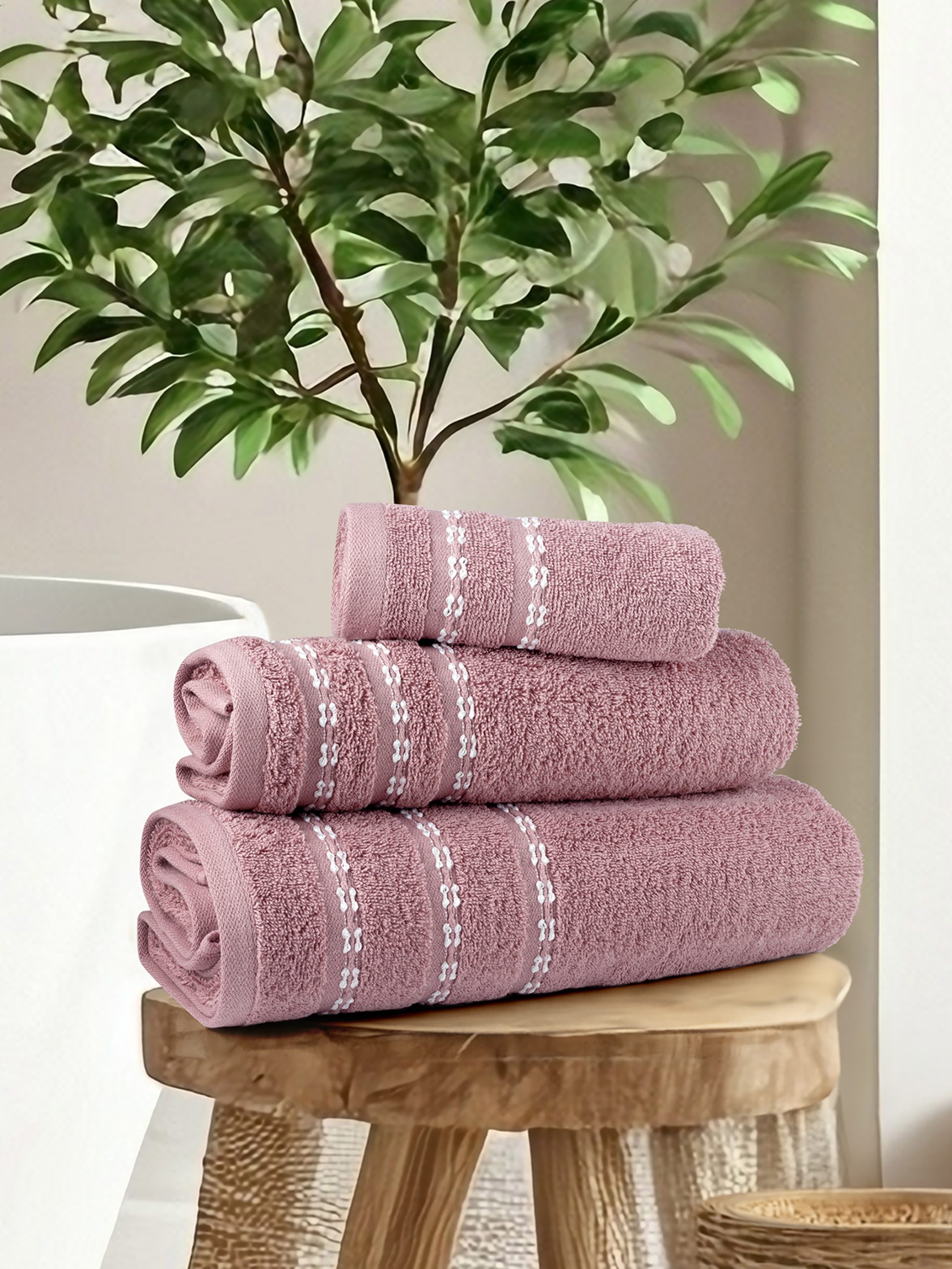 - Διαστάσεις : 1 πετσέτες χεριών 30×50, 1 πετσέτα προσώπου 50×90, 1 πετσέτα σώματος 70×140
