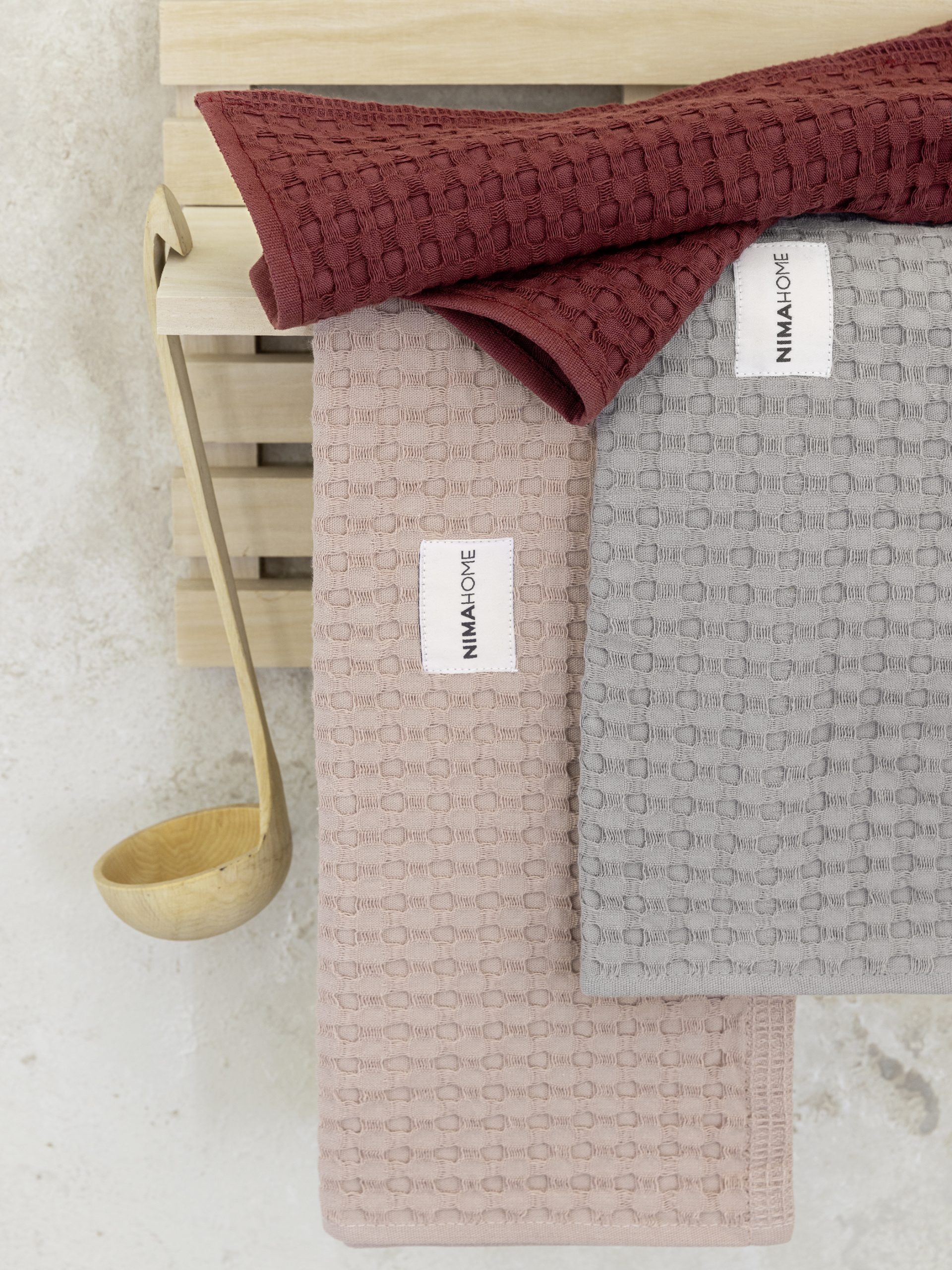 Ποτηρόπανα κουζίνας από την εταιρεία Nima Home, σε μοντέρνα χρώματα. Είναι πικέ, βαμβακερά, απαλά, απορροφητικά και ανθεκτικά στο χρήση.