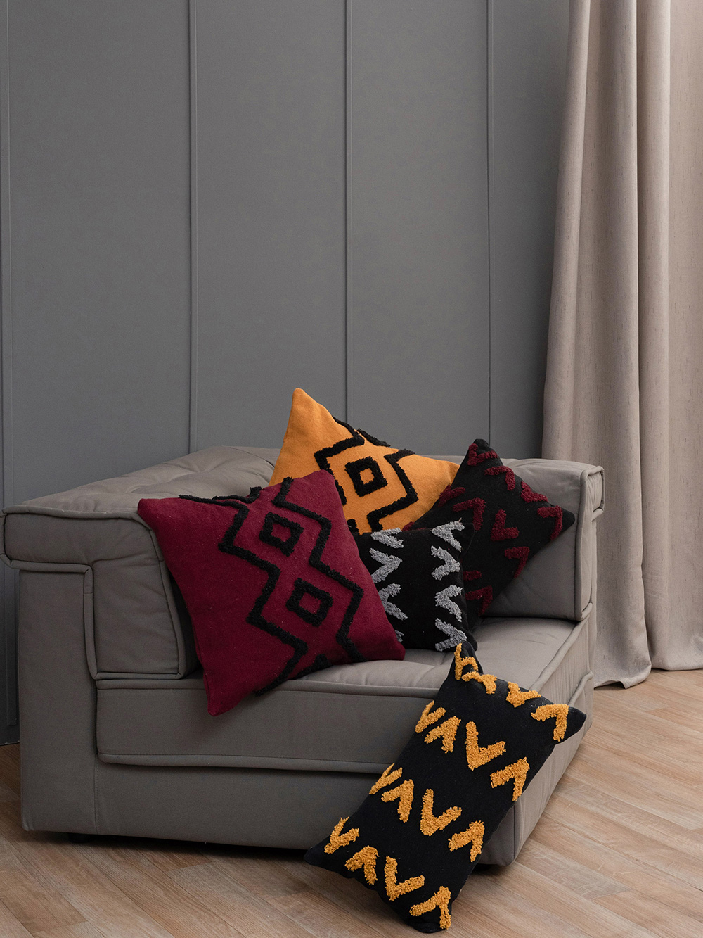 Διακοσμητικές μαξιλαροθήκες με ανάγλυφο σχέδιο, της εταιρίας Palamaiki, για να ολοκληρώσετε την διακόσμηση του χώρου σας. Οι μαξιλαροθήκες διαθέτουν φερμουάρ για να πλένονται.