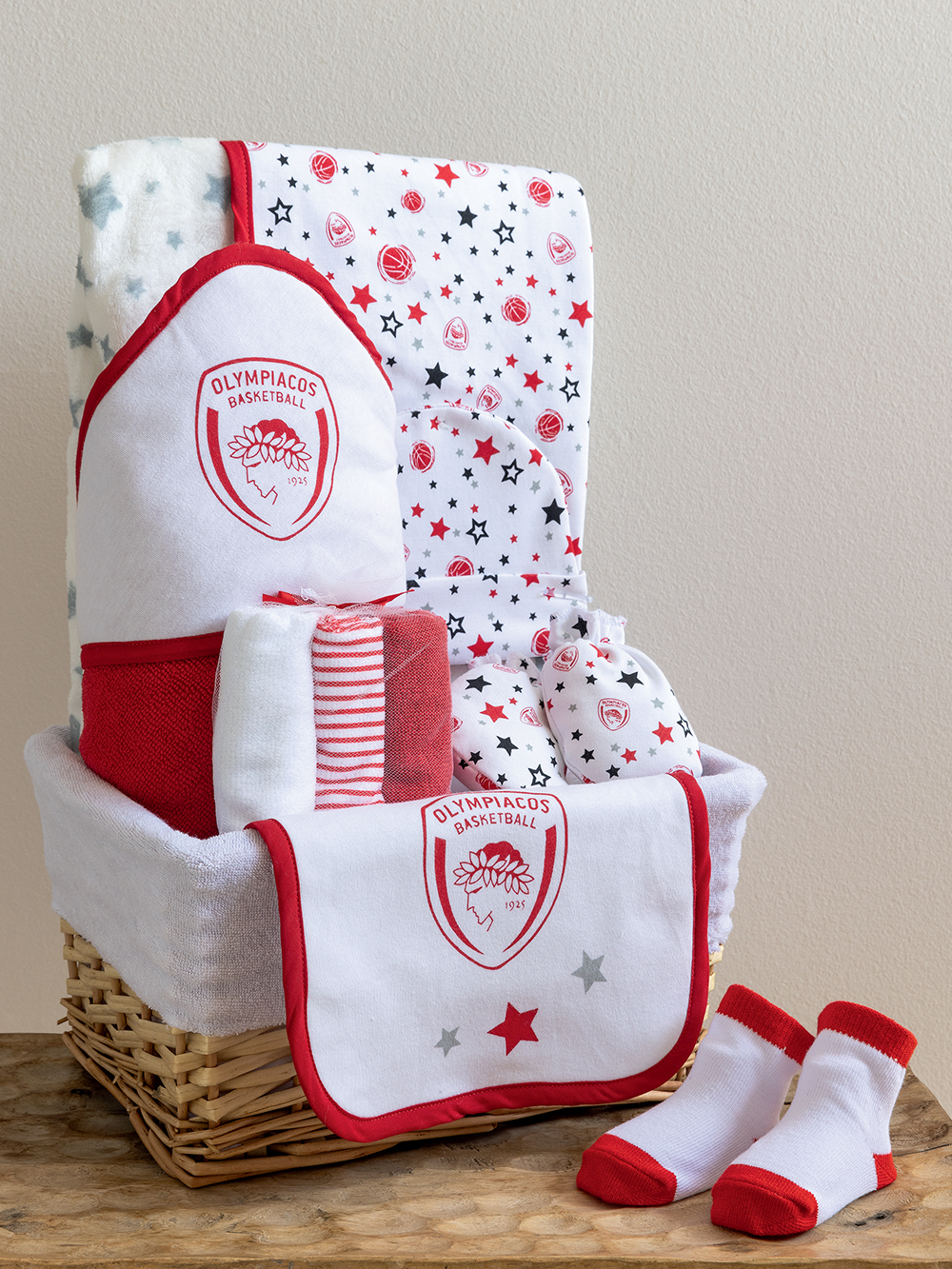 Καλάθι δώρου για νεογέννητο με κουβέρτα fleece, κάπα, λαβέτα, σαλιάρα, πανάκια 3 τμχ, σκουφάκι, γαντάκια, καλτσάκια, από την εταιρία Palamaiki.