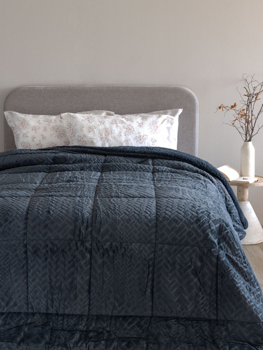 Palamaiki Κουβερτοπάπλωμα Γούνα Υπέρδιπλο 220×240 Mozza Coal