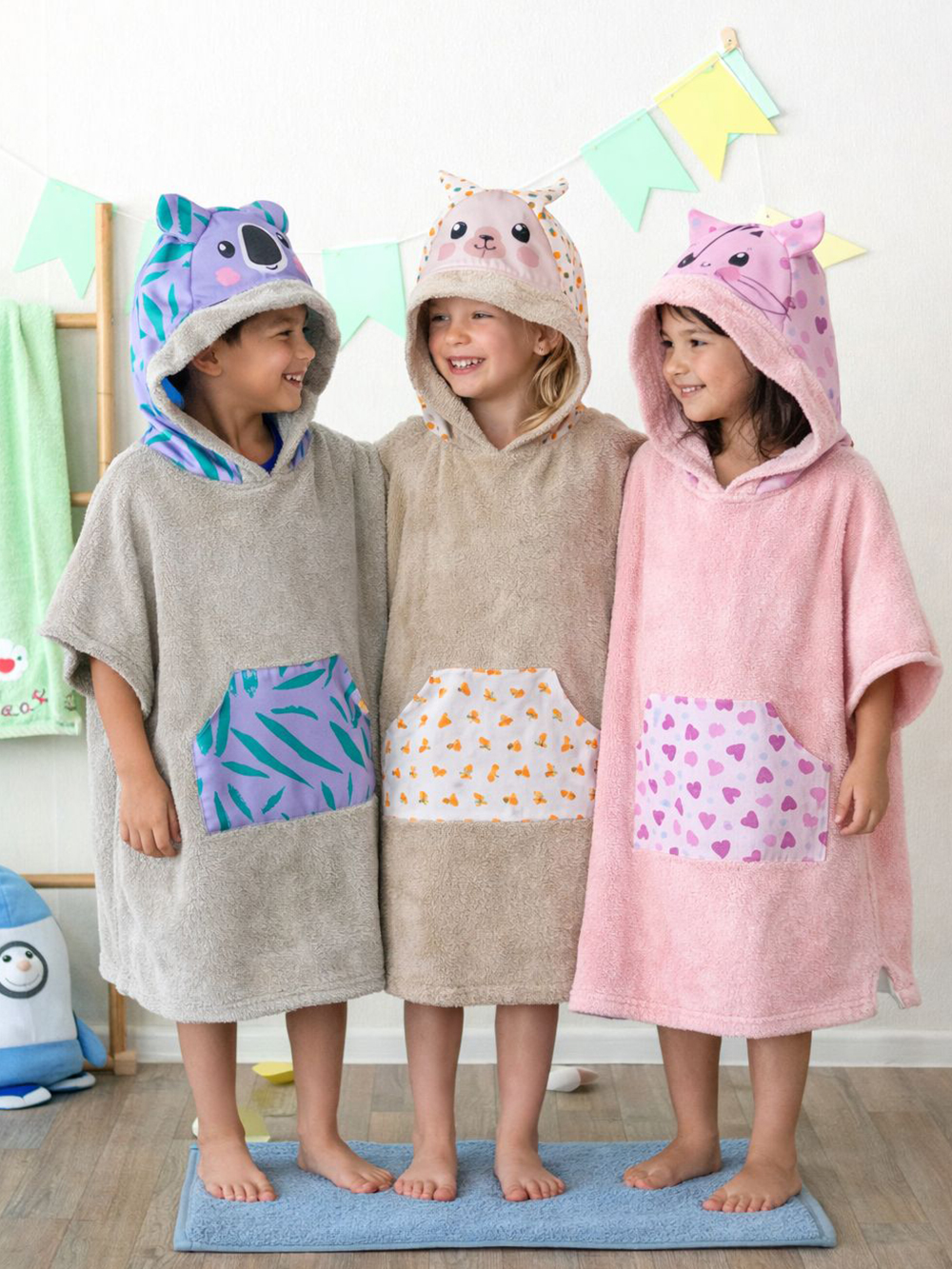 Για το καθημερινό μπάνιο του παιδιού σας ή την παραλία, η Palamaiki σας προτείνει έξτρα απορροφητικά και απαλά πόντσο με χαρούμενα σχεδιάκια.