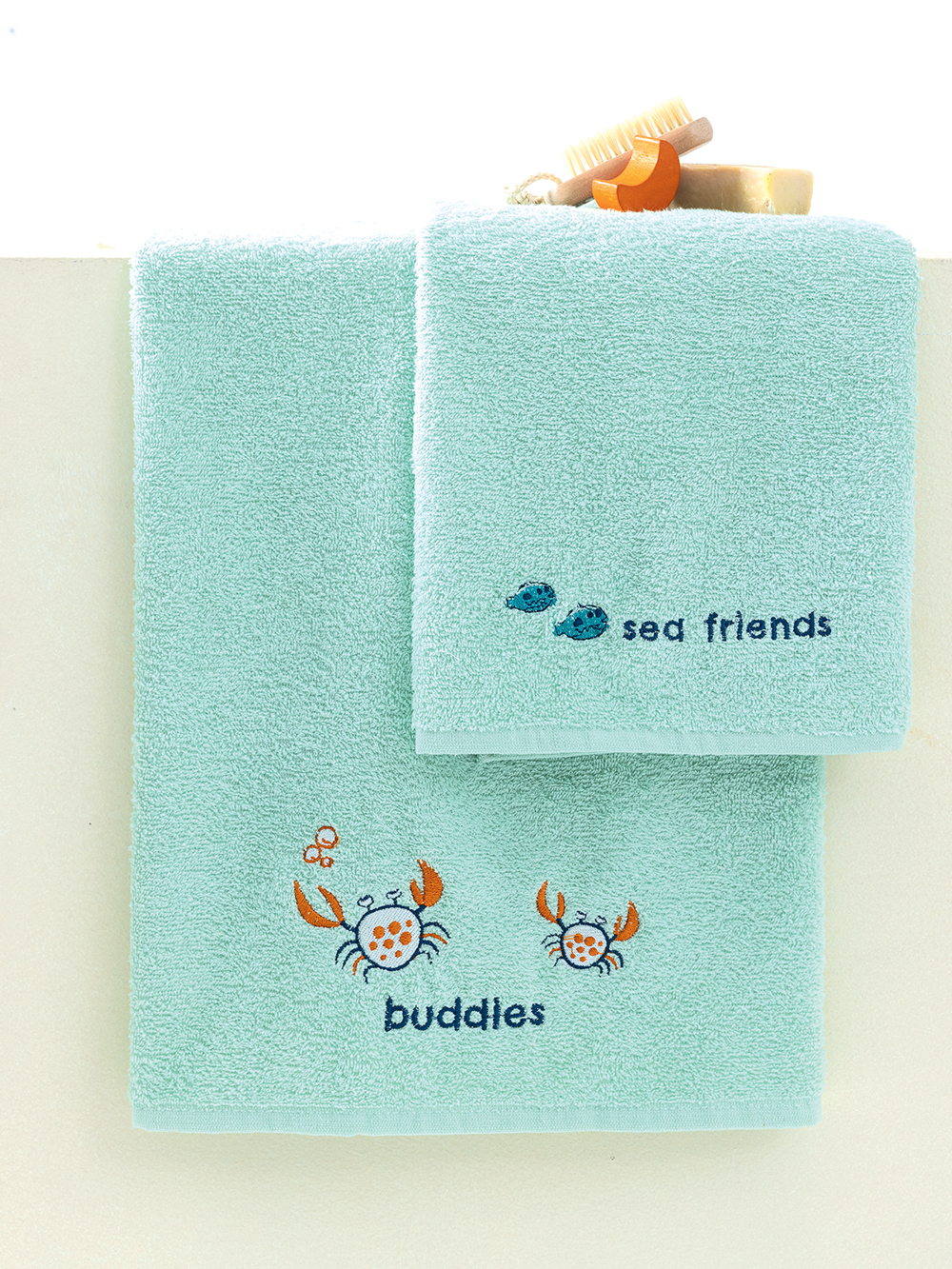 Βαμβακερές πετσέτες με κέντημα της σειράς Kids Bath, από την εταιρία Palamaiki, εξαιρετικά απαλές, υποαλλεργικές και απορροφητικές, για το καθημερινό μπανάκι του μωρού σας.