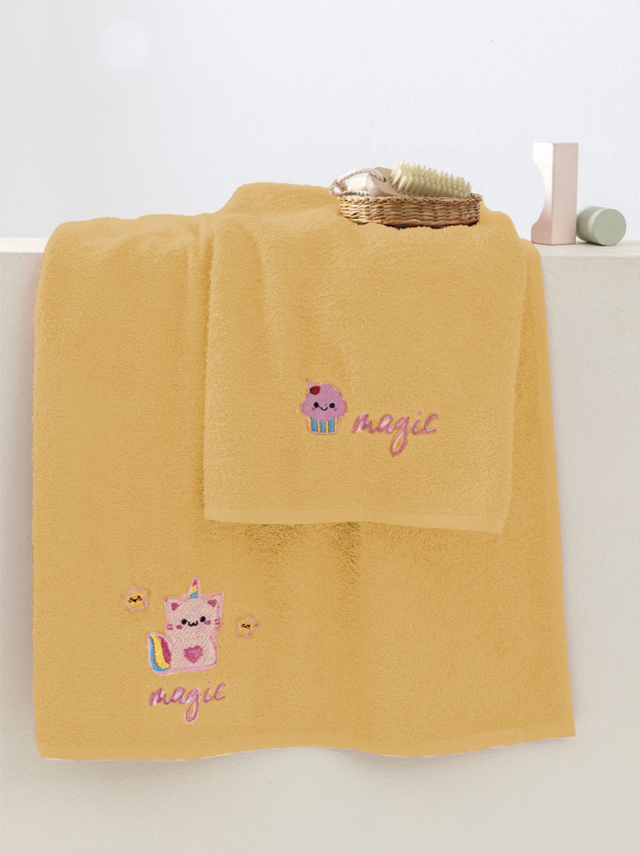 Βαμβακερές πετσέτες με κέντημα της σειράς Kids Bath, από την εταιρία Palamaiki, εξαιρετικά απαλές, υποαλλεργικές και απορροφητικές, για το καθημερινό μπανάκι του μωρού σας.