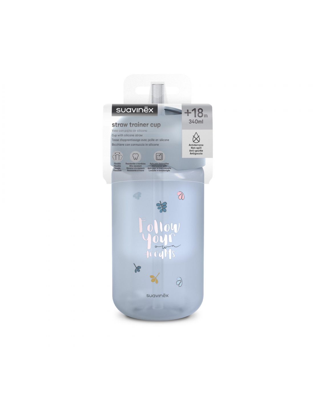 Suavinex Παγούρι Με Καλαμάκι Σιλικόνης 340ml +18 Μηνών Bear Blue