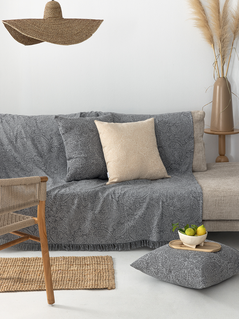 Η εταιρία Palamaiki σας προτείνει ριχτάρια με κρόσσι διπλής όψης, για να προστατέψουν το σαλόνι σας από σκόνη και λεκέδες και να τον μεταμορφώσουν σε ένα ζεστό και φιλόξενο χώρο. Ολοκληρώστε τη διακόσμηση με τα ασορτί διακοσμητικά μαξιλάρια.